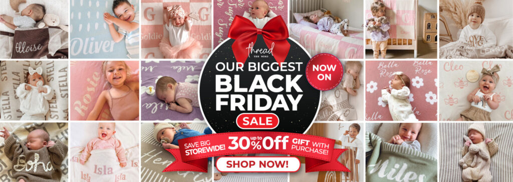 When you spend over $150, you’ll receive a $30 Digital Thread The Word Gift Card to use on your next purchase! Use it towards your favourites like The Bunny, Personalized Christmas Stockings, or another beautiful made-to-order blanket.