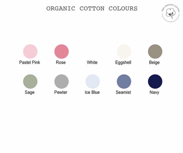 • Material Choices: 100% cotton or 100% organic cotton