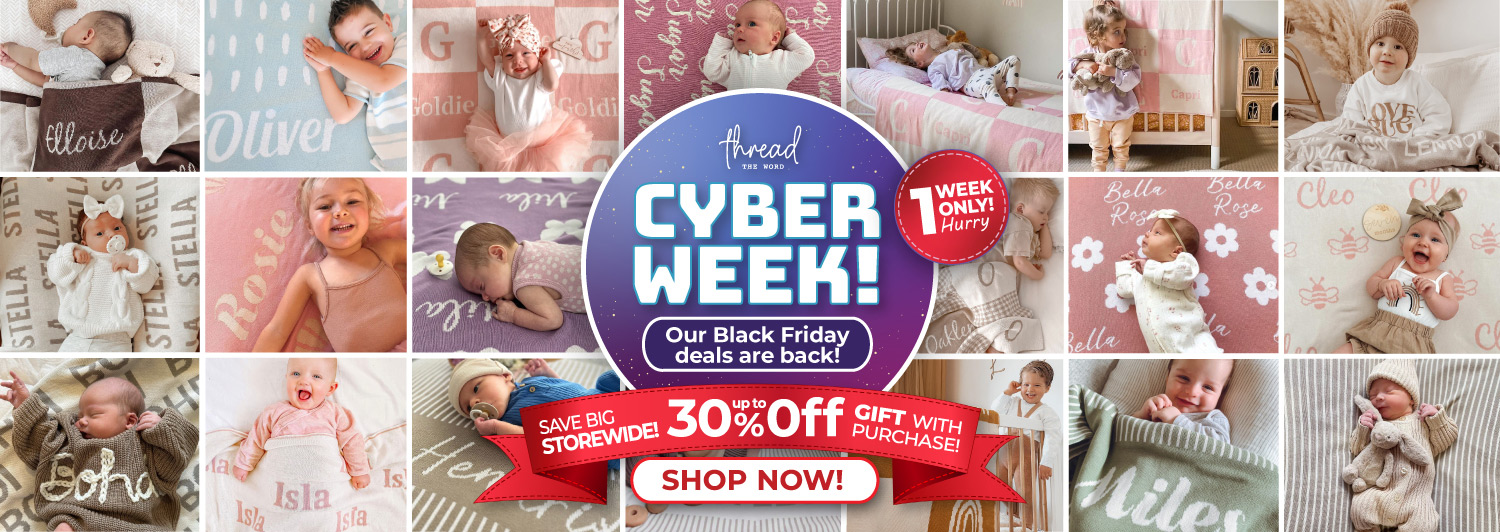 When you spend over $150, you’ll receive a $30 digital Thread The Word Gift Card to use on your next purchase! Use it towards your favourites like The Bunny, Personalized Christmas Stockings, or another beautiful made-to-order blanket.