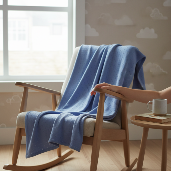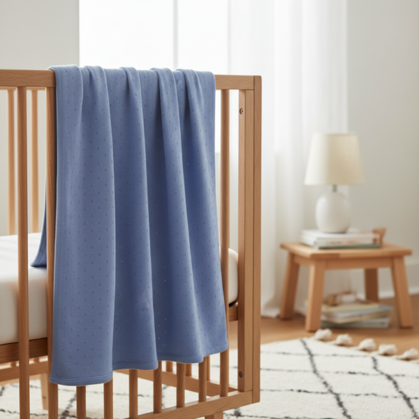 Crafted from 100% organic cotton, it feels soft and breathable against delicate skin, making it ideal for prams, bassinets, cots, or styled as a lightweight throw. A versatile, year-round piece with strong gifting appeal, available in any two-color combination to complement your store’s collection.