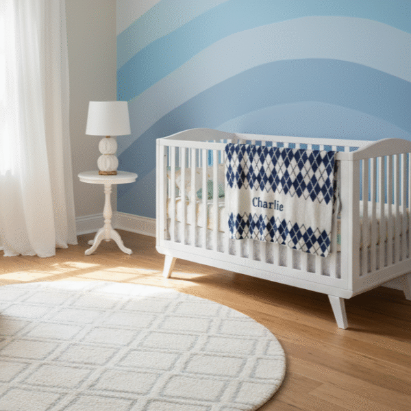 Add a touch of timeless elegance to your space with our Custom Argyle Blanket. Featuring a classic diamond pattern , you can personalize your blanket by selecting two colors from our palette of 40 beautiful shades and adding a name in one of our 19 stylish fonts. Crafted with care in America, these knitted blankets are made from 100% organic cotton, offering warmth and comfort all year round.